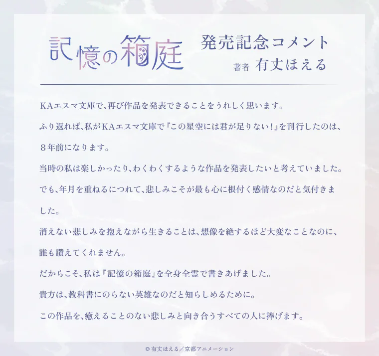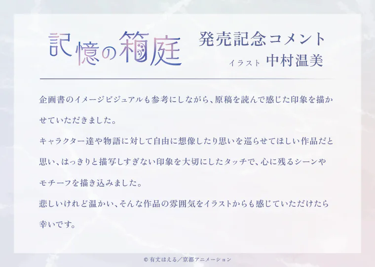 『記憶の箱庭』本日発売!発売記念コメントを公開!