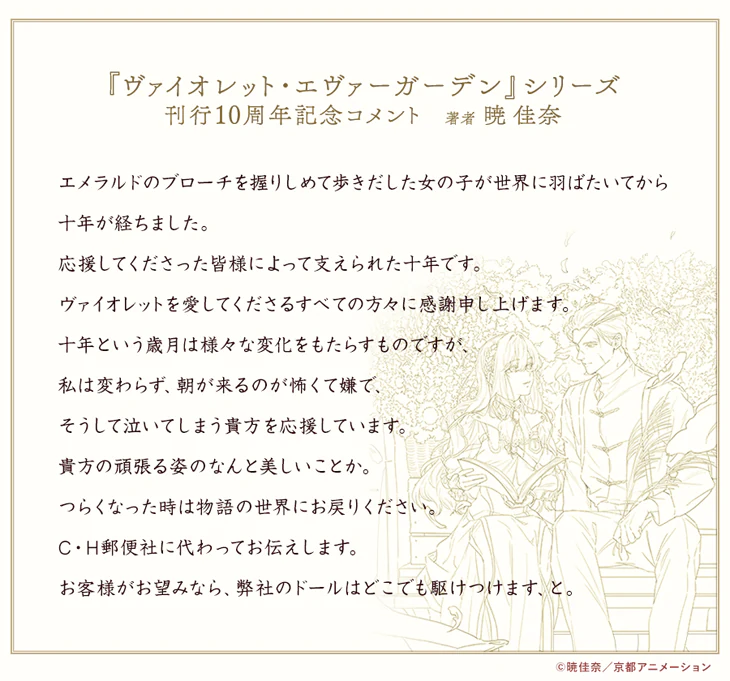 引き続き、『ヴァイオレット・エヴァーガーデン』の応援をよろしくお願いいたします。
