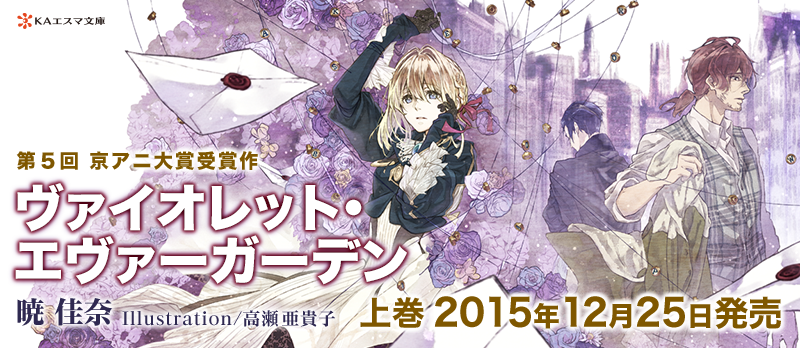 第5回京アニ大賞受賞作『ヴァイオレット・エヴァーガーデン』の発売が決定いたしました! 上巻は2015年12月25日(金)発売! 京アニ&Doファン感謝イベント会場内にてポスターを掲示しておりますので、ご来場の方はぜひご覧ください!